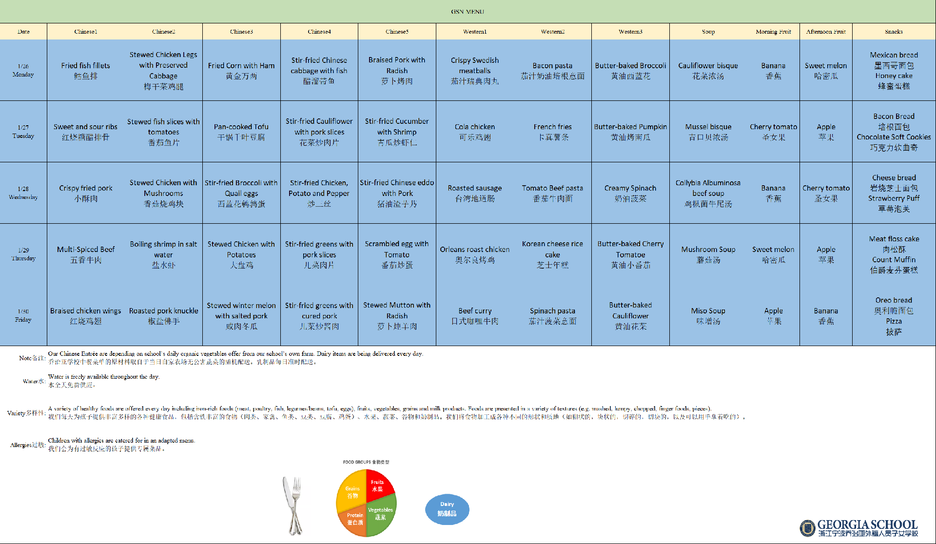 Cafeteria Menu